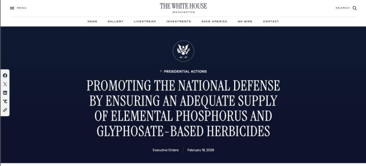 这天特朗普援引《国防生产法》,正式将元素磷和草甘膦除草剂列为美国“国家安全优先事项”。